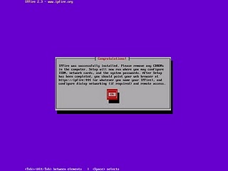 7. Langkah ke tujuh setelah proses pembuatan pasrtisi selesai dan dilanjutkan dengan proses instalasi IPFIRE ke hardisk maka akan muncul jendela “Congratulations..” klik saja “OK” untuk melanjutkan.